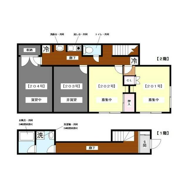 | 専有面積 | 11.34㎡ | 階建/階 | 2階建/2階 |