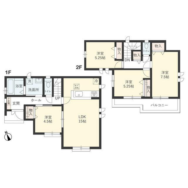 | 間取り | 4LDK(LDK15・洋4.5・洋7.5・洋5.2・洋5.2) | 主要採光面 | 南 |